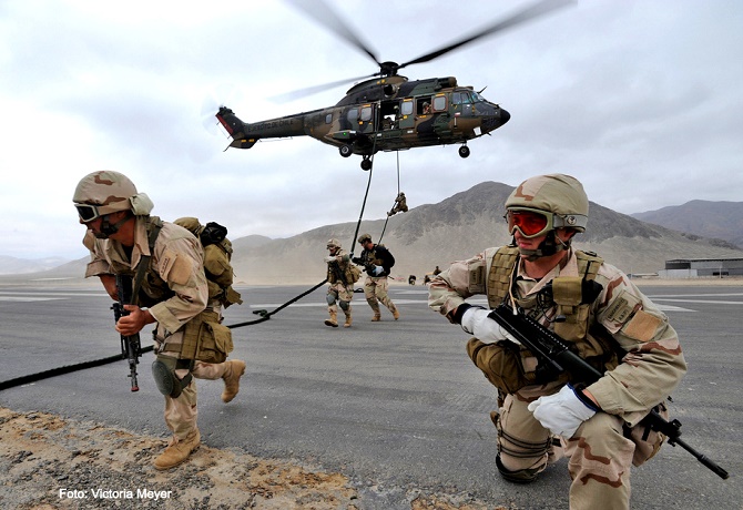 Exercised Southern Star 2009 – U.S. Special Forces Soldiers train Chilean special operations soldiers and marines how to fast rope Oct. 22 in Chanaral, Chile. Five nations, including Chile, Uruguay, Paraguay, Brazil and the United States, participated in the multinational exercise Oct. 18-31. The exercise promotes interoperability and builds participating nation capability. The goal was to develop a solid working relationship based on mutual respect and open communication. Photo by U.S. Tech. Sgt Victoria Meyer.